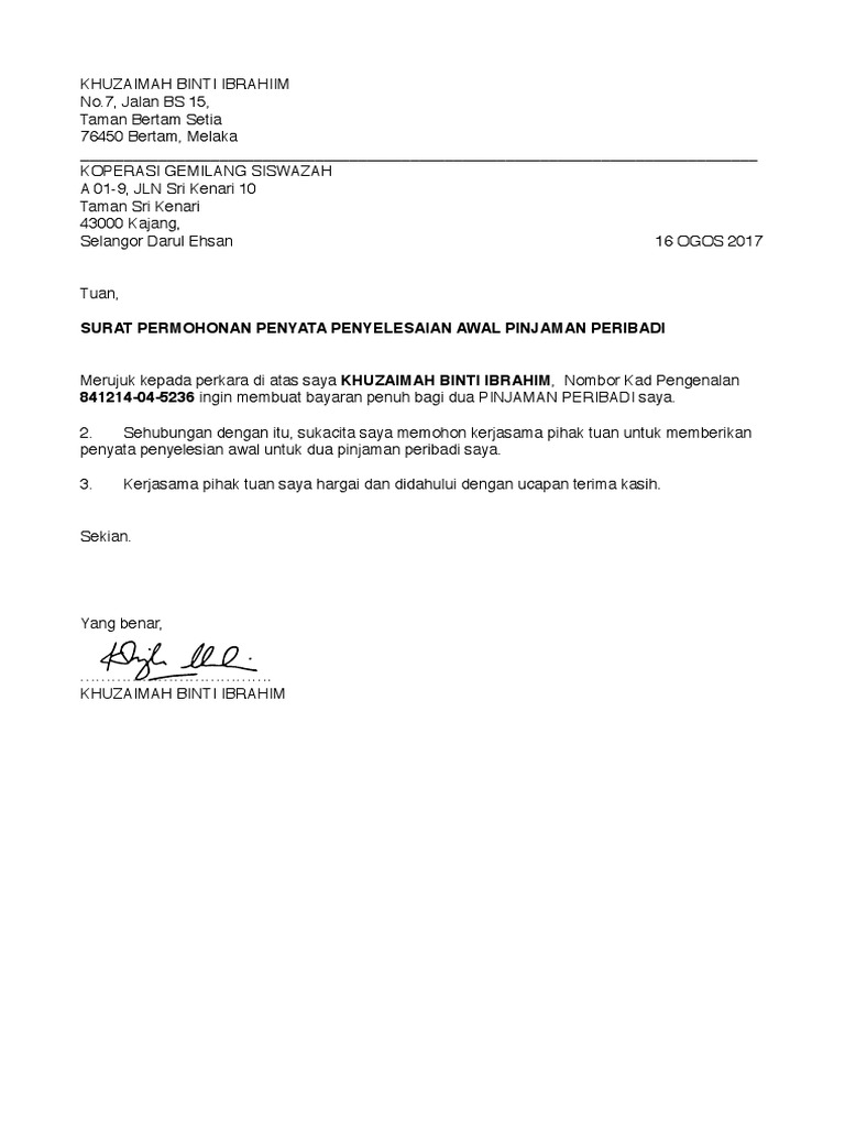 1 from We have 6 images about contoh surat pilihan bersara awal. Terkadang ada banyak hal disaat kita bekerja di sebuah perusahaan atau instansi yang membuat kita. If you are looking for contoh surat pilihan bersara awal you've come to the right place. Jika mahu cuti panjang, tetapi tidak ada idea untuk beritahu boss, boleh cuba ikuti contoh surat cuti tanpa gaji dari kami berserta beberapa alasan yang logik dan masuk akal. 100%(1)100% found this document useful (1 vote). If you are looking for contoh surat pilihan bersara awal you've come to the right place. In these page, we also have variety of images available. Contextual translation of contoh surat bersara into english.